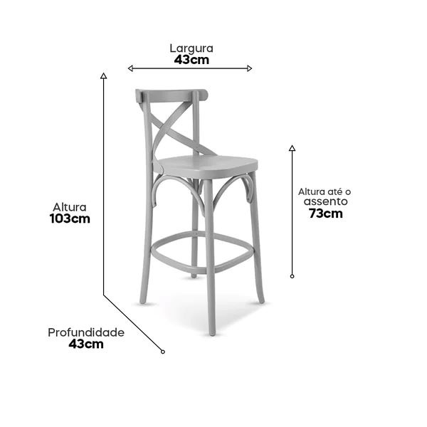 Cód. BANQXM4 Banqueta de Madeira Maciça X na Cor Cinza – Alta - Conforto e Estilo para sua Decoração - Mobiliario Rústico - Cód: BANQXM4