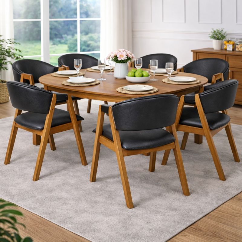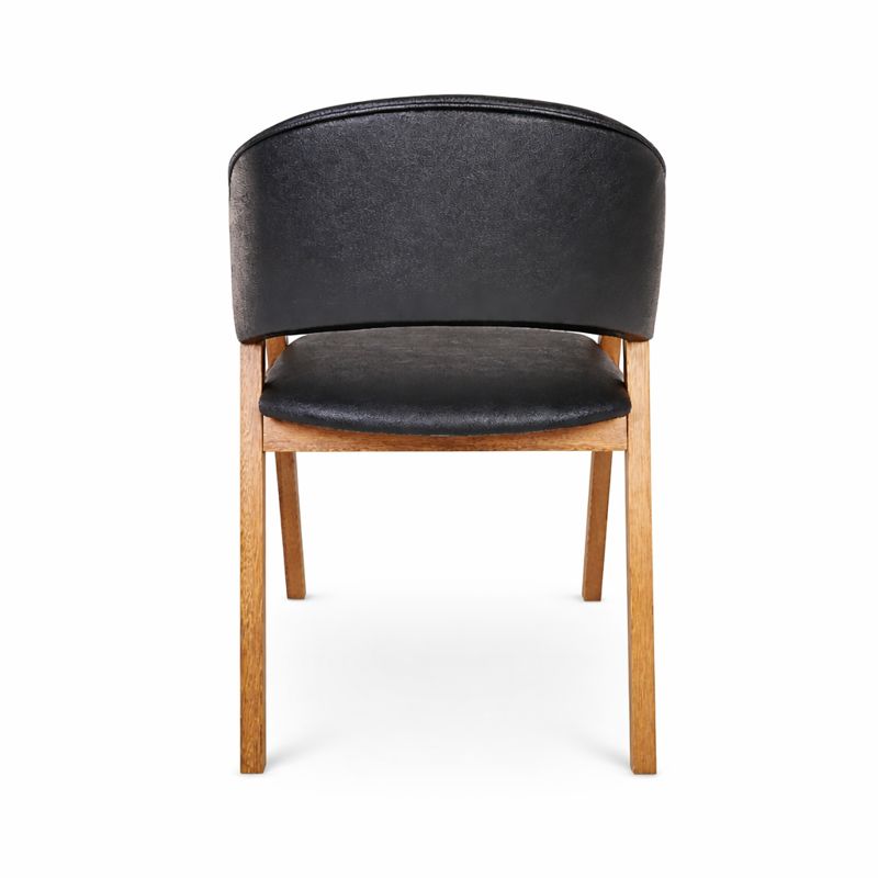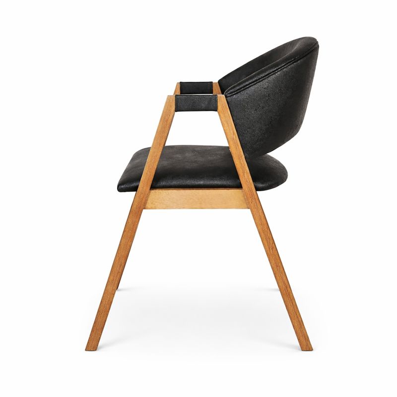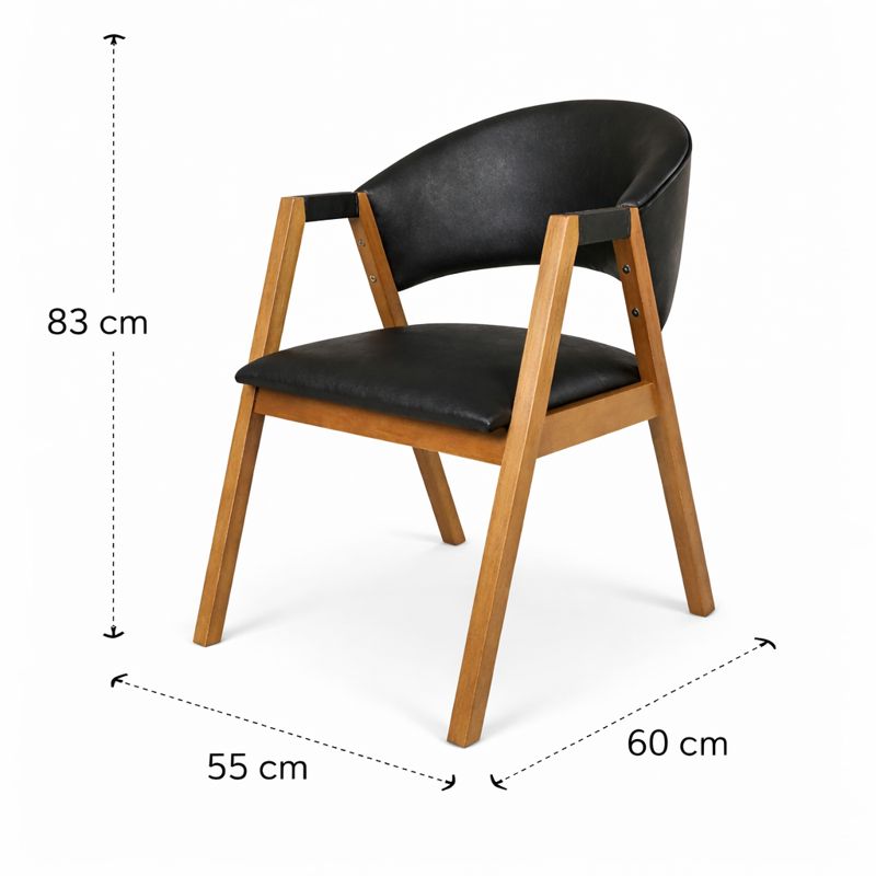 Cód. CAD17 Cadeira Hibisco de Madeira Maciça Encosto Anatômico com Apoio no Braço madeira na cor amendoa tecido na cor Courino Preto - Cód: CAD17
