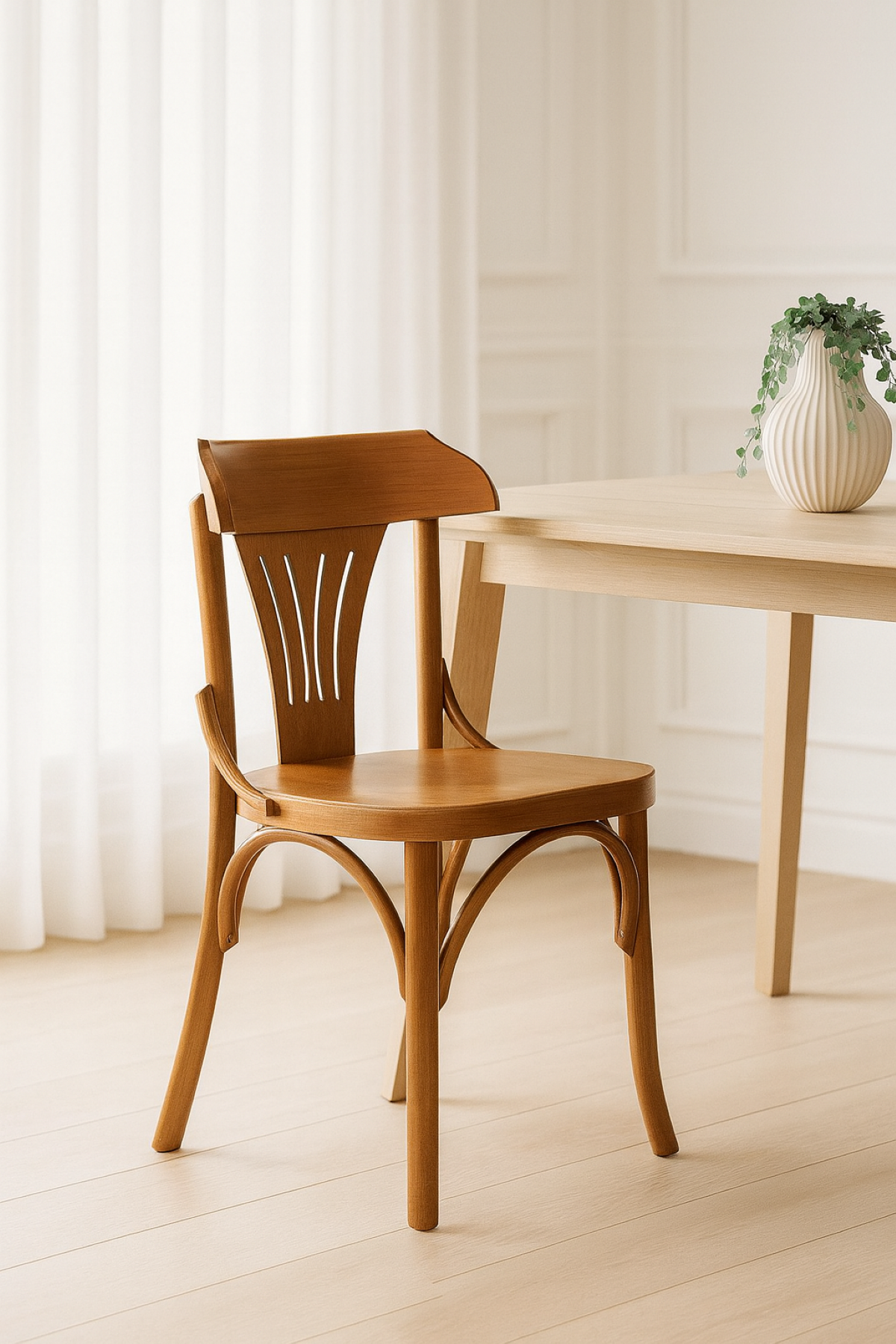 Cód. CAD4 Cadeira Irís de Madeira Maciça na cor Amendoa - Cód: CAD4