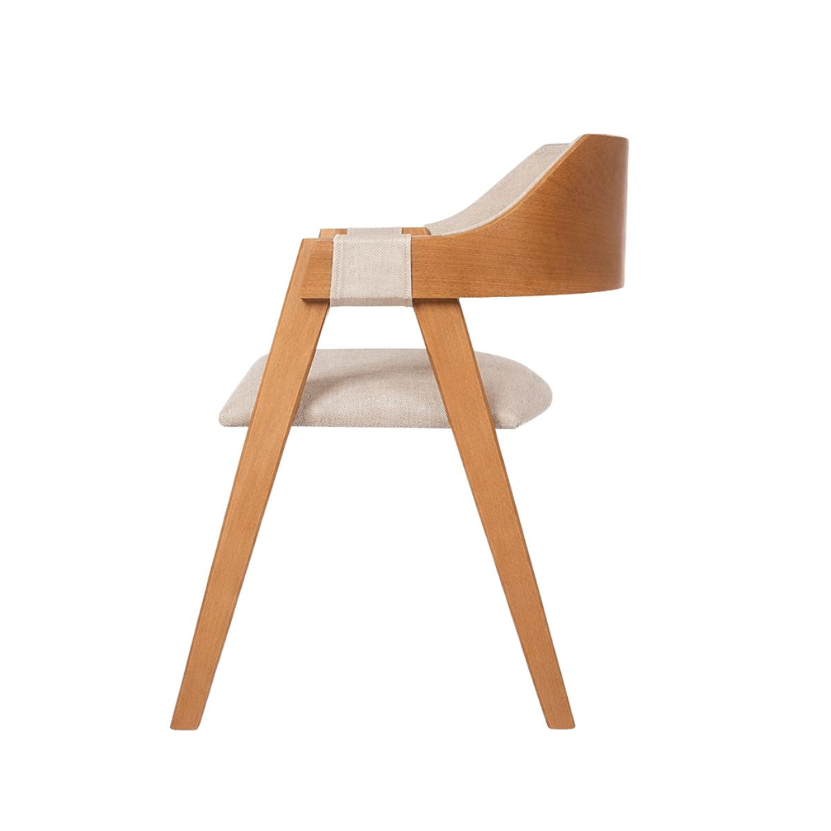 Cód. CAD16 Cadeira Dália de Madeira Maciça Encosto Anatômico com Apoio no Braço na cor amendoa tecido na cor Linho Areia - Cód: CAD16