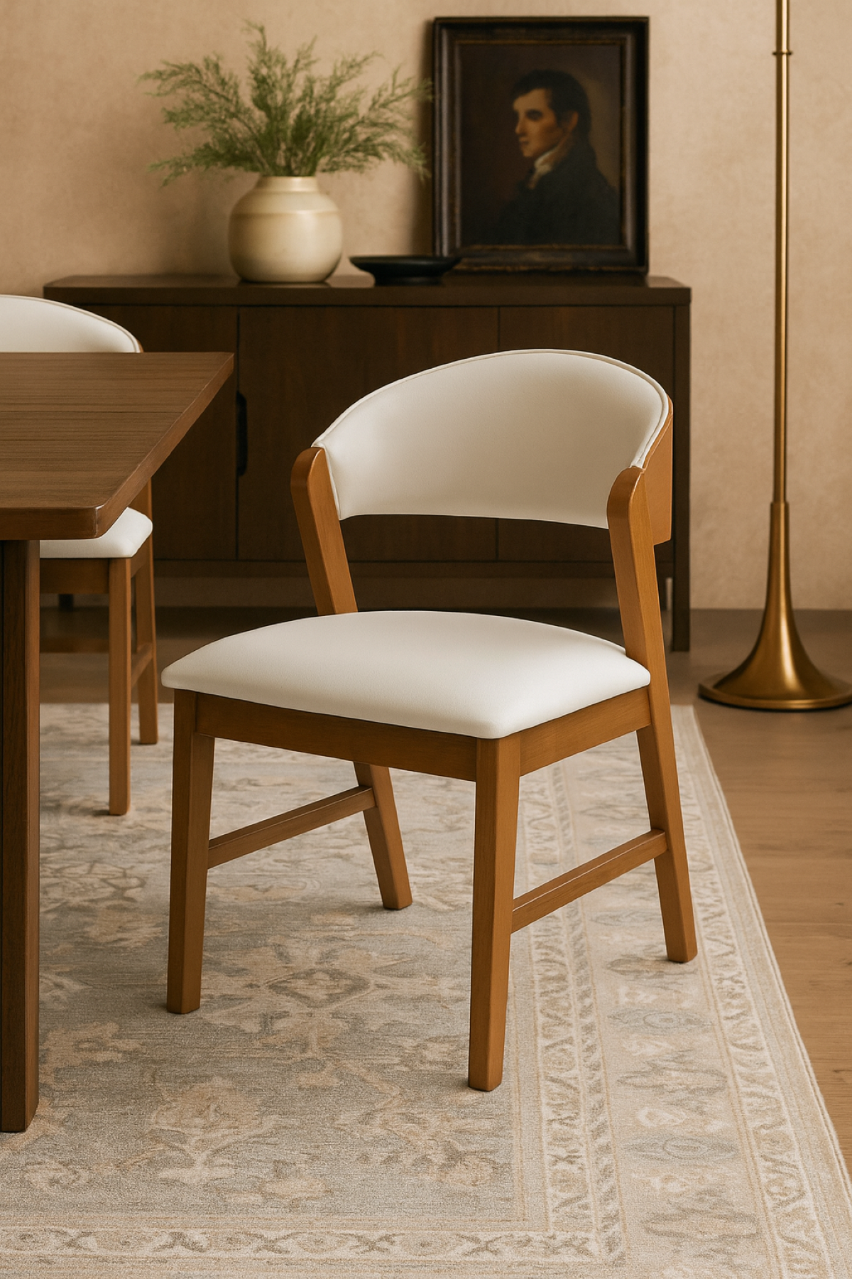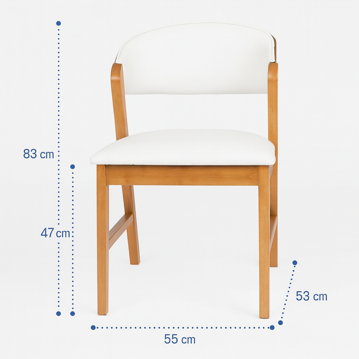 Com altura de 83 cm e um assento confortável de 55 cm de largura e 53 cm de profundidade, a Cadeira Siena proporciona uma experiência de uso firme e acolhedora. O estofamento em espuma D23, com espessura de 5 cm, oferece um toque suave, ideal para longas refeições em família ou jantares com amigos.