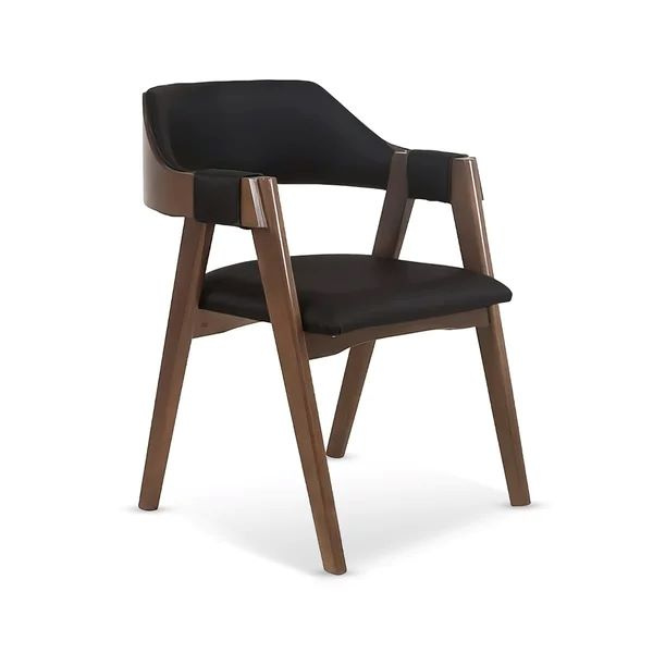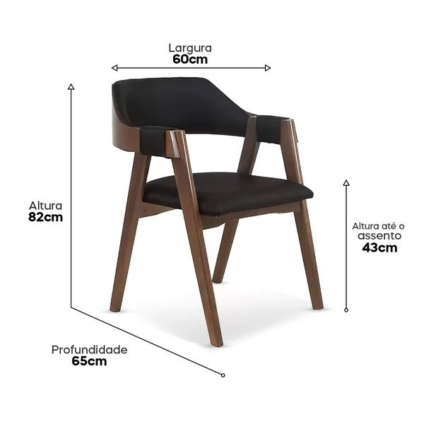 Cód. CAD14 Cadeira Dália de Madeira Maciça Encosto Anatômico com Apoio no Braço mandeira na cor Imbuia tecido Courino Preto - Cód: CAD14