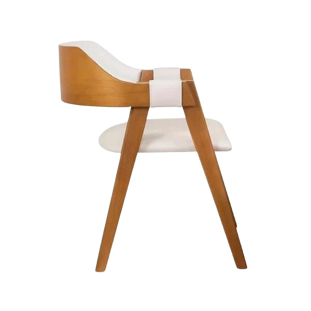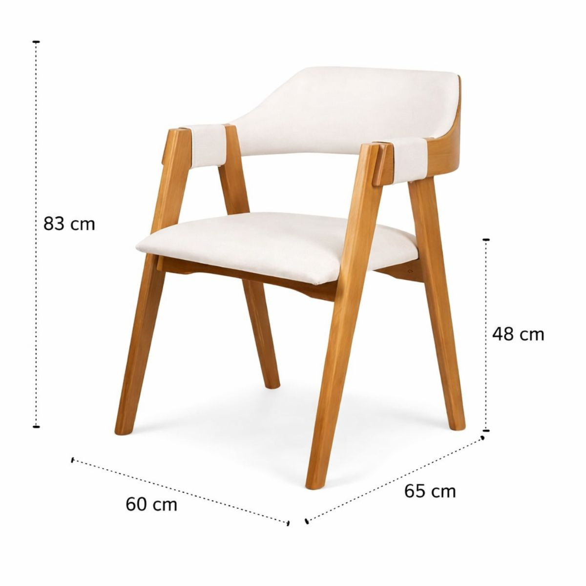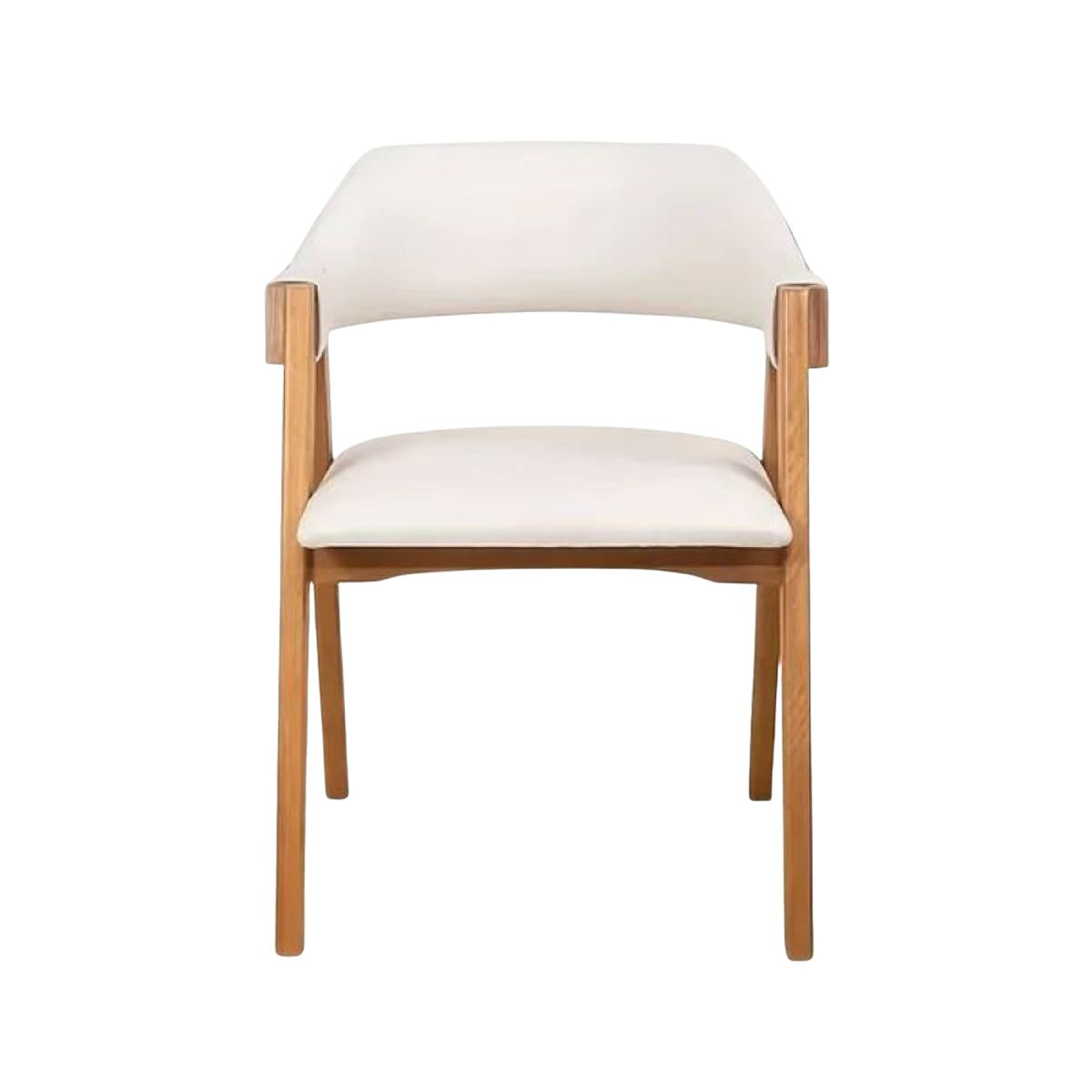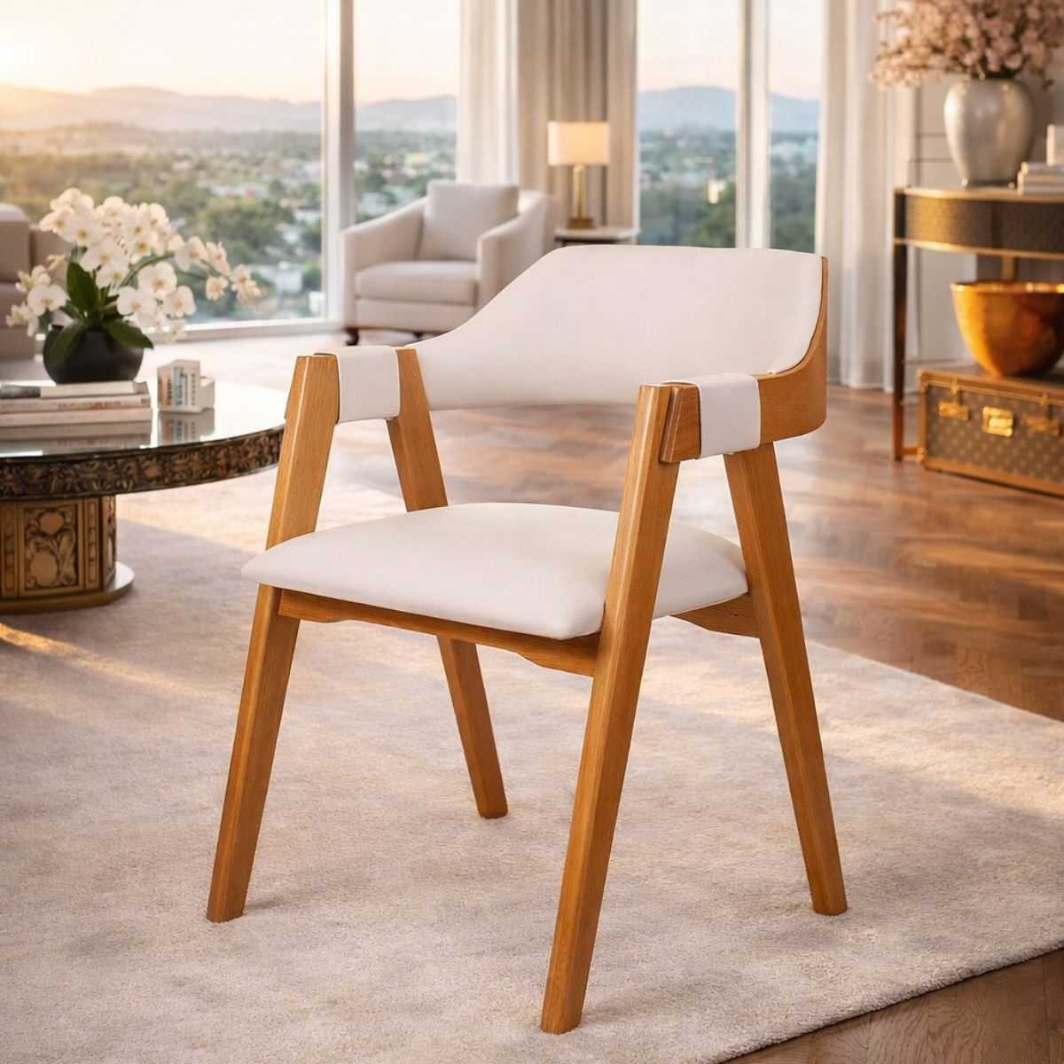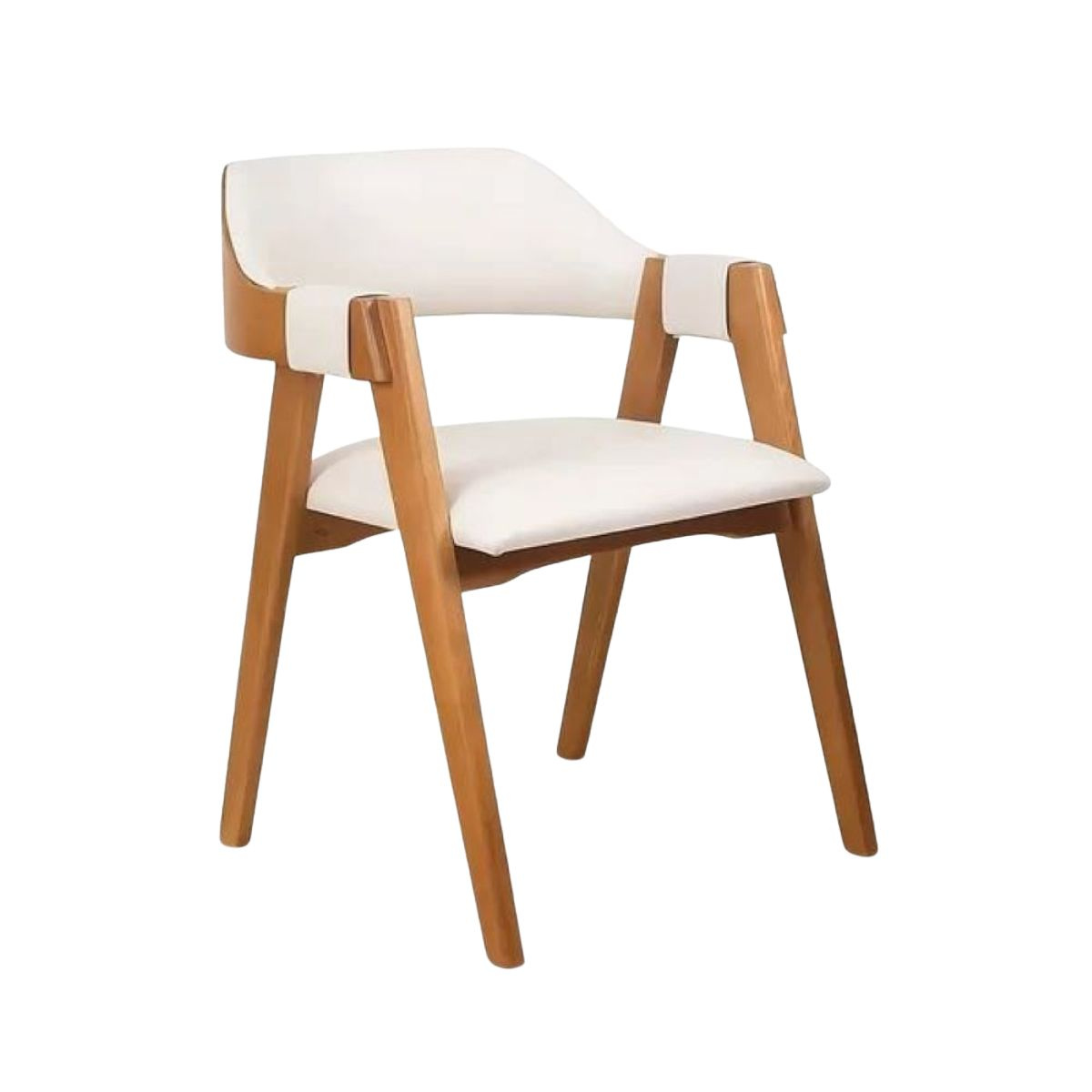 Cód. CAD16 Cadeira Dália de Madeira Maciça Encosto Anatômico com Apoio no Braço na cor amendoa tecido na cor Courino Branco - Cód: CAD16