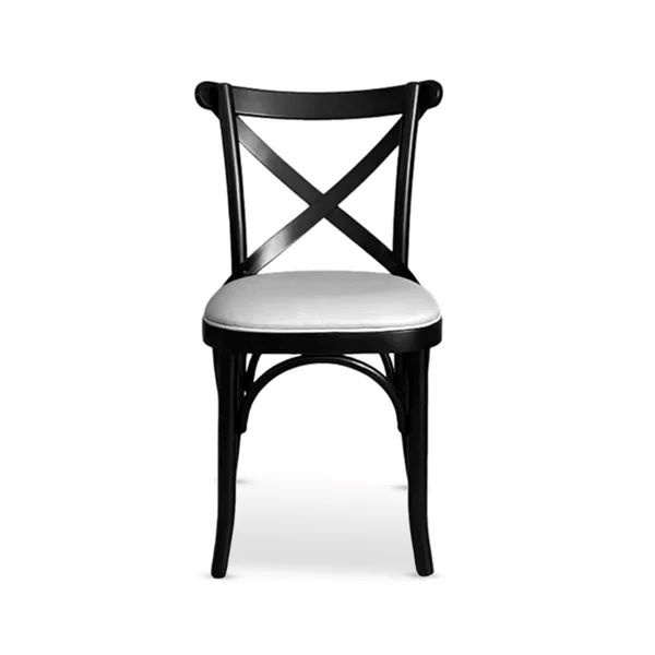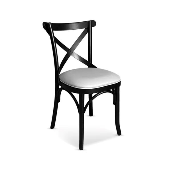Cód. CAD22 Cadeira X de Madeira Maciça com Estofado, madeira na cor Preta - tecido Courino Branco - Cód: CAD22