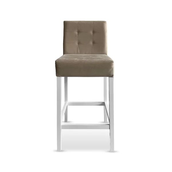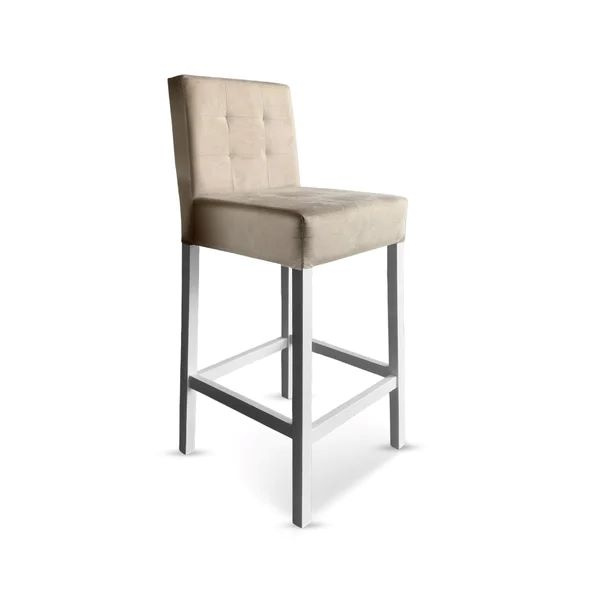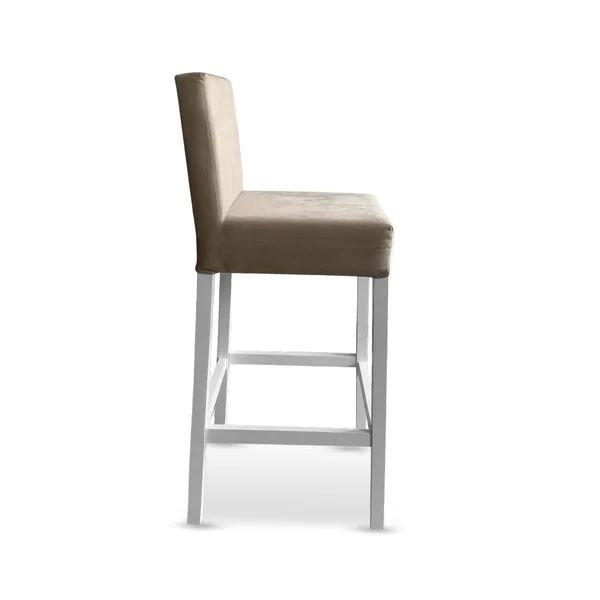 Cód. BANQ21 Banqueta Gana Estofada em Madeira na cor Branca - Tecido Veludo Bege - Cód: BANQ21