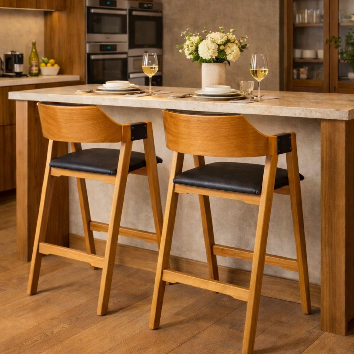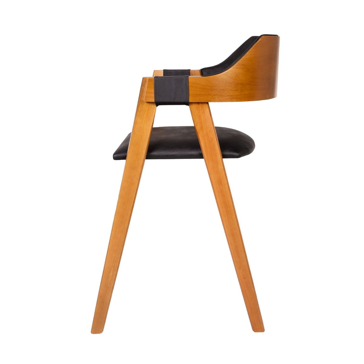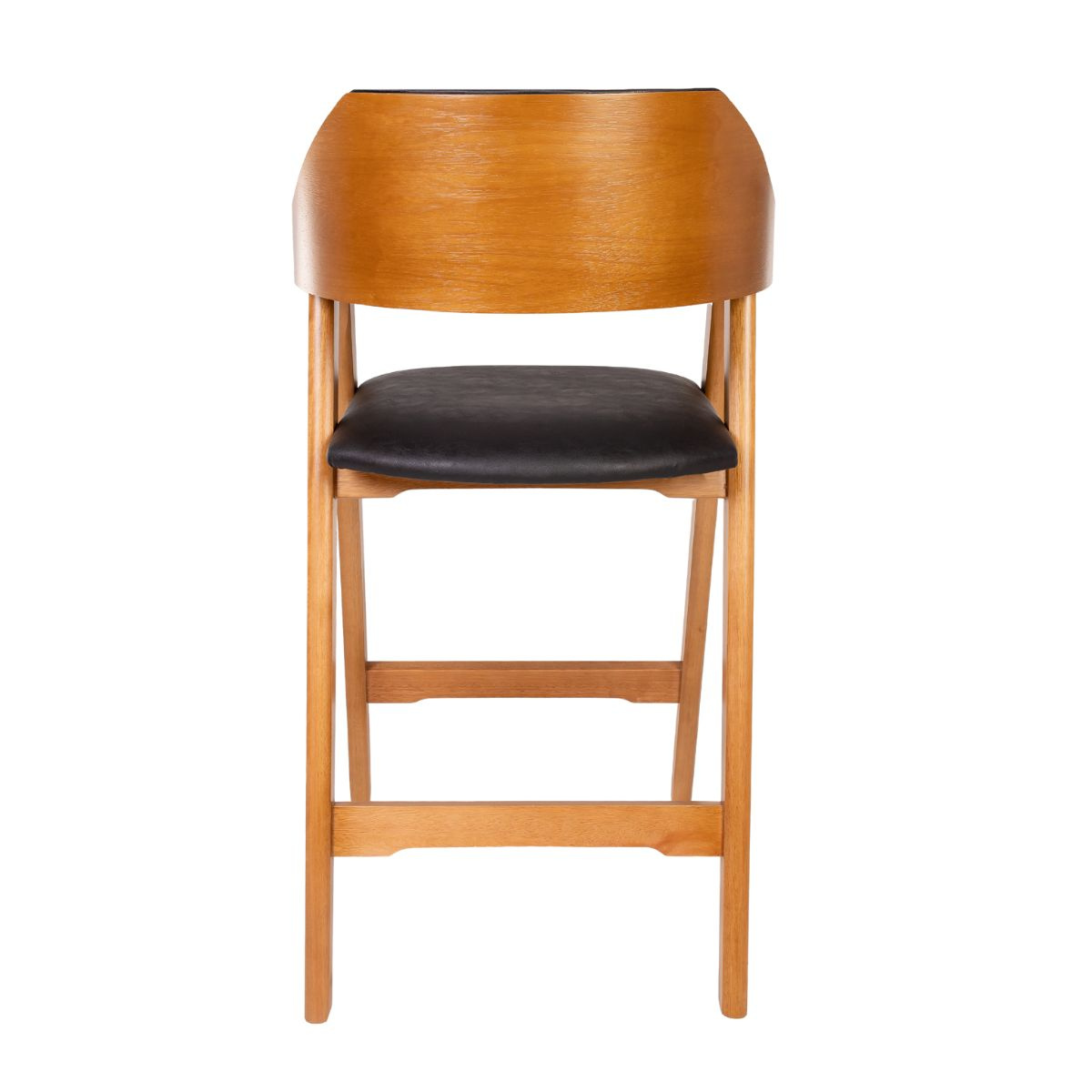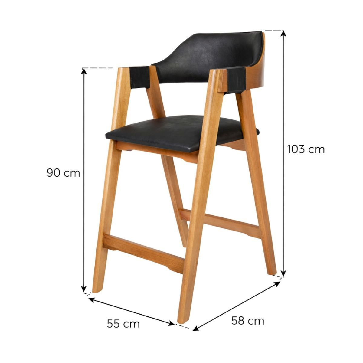Cód. BANQD122 Banqueta Dália Madeira Maciça Estofada com Apoio de Braço madeira na cor Amendoa Tecido Courino Preto - Cód: BANQD122