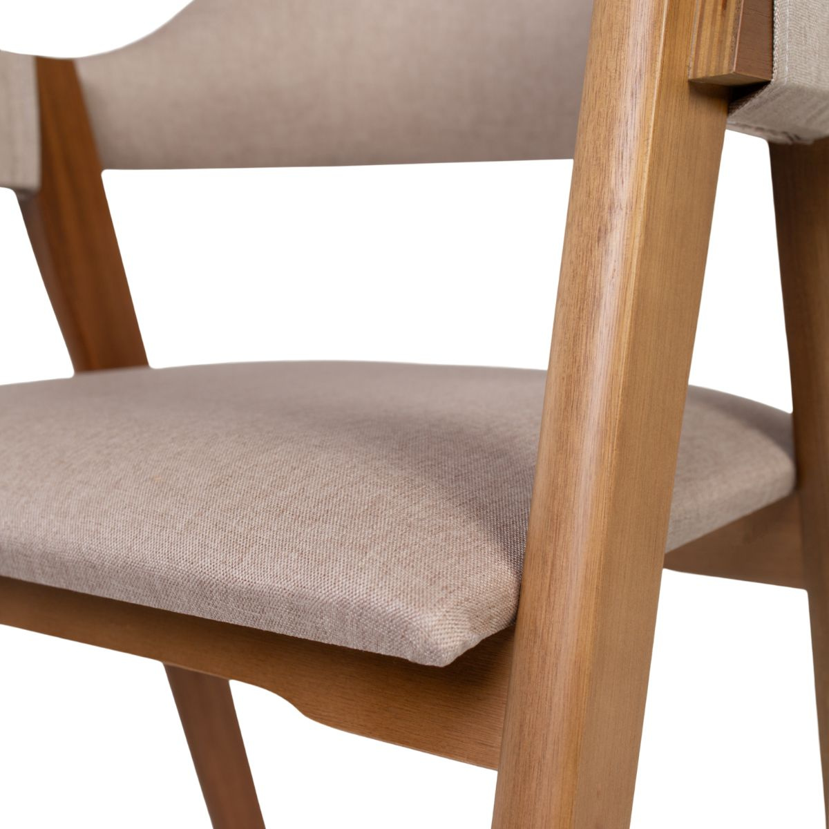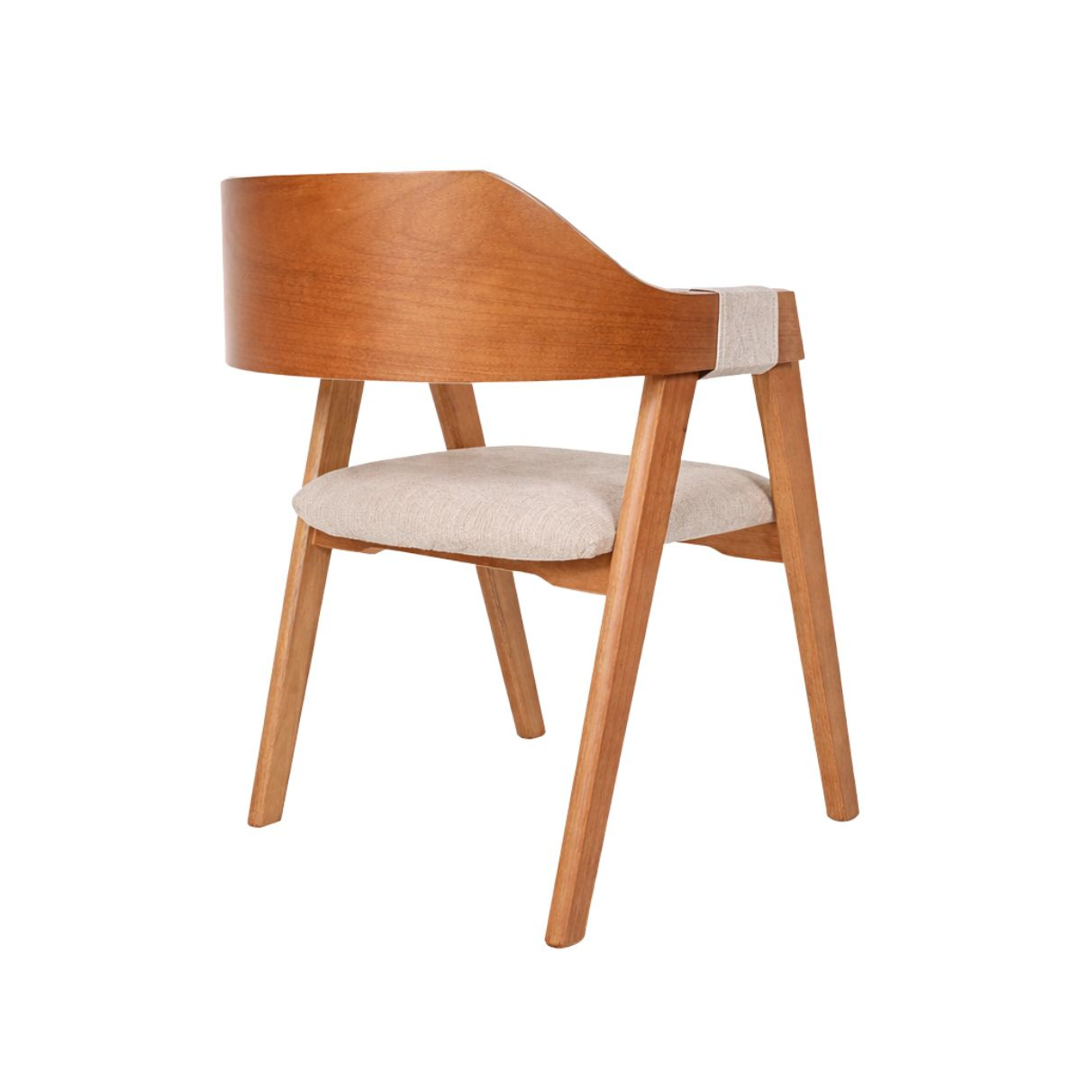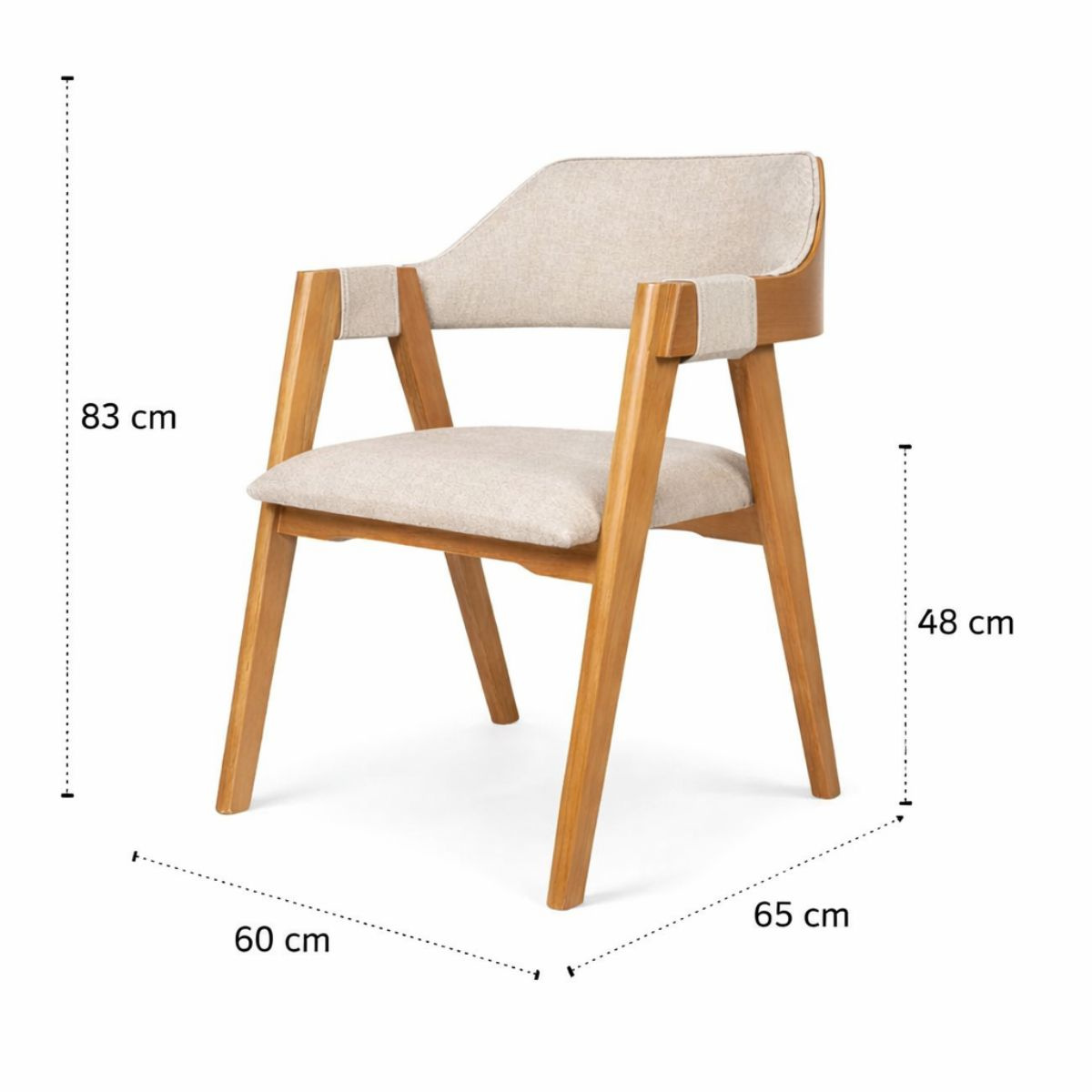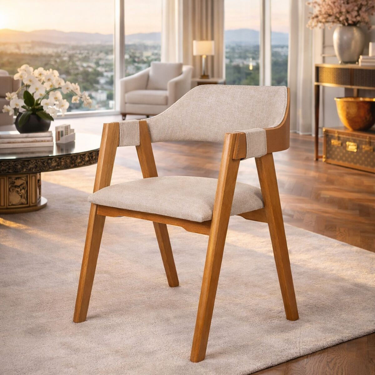 Cód. CAD16 Cadeira Dália de Madeira Maciça Encosto Anatômico com Apoio no Braço na cor amendoa tecido na cor Linho Areia - Cód: CAD16