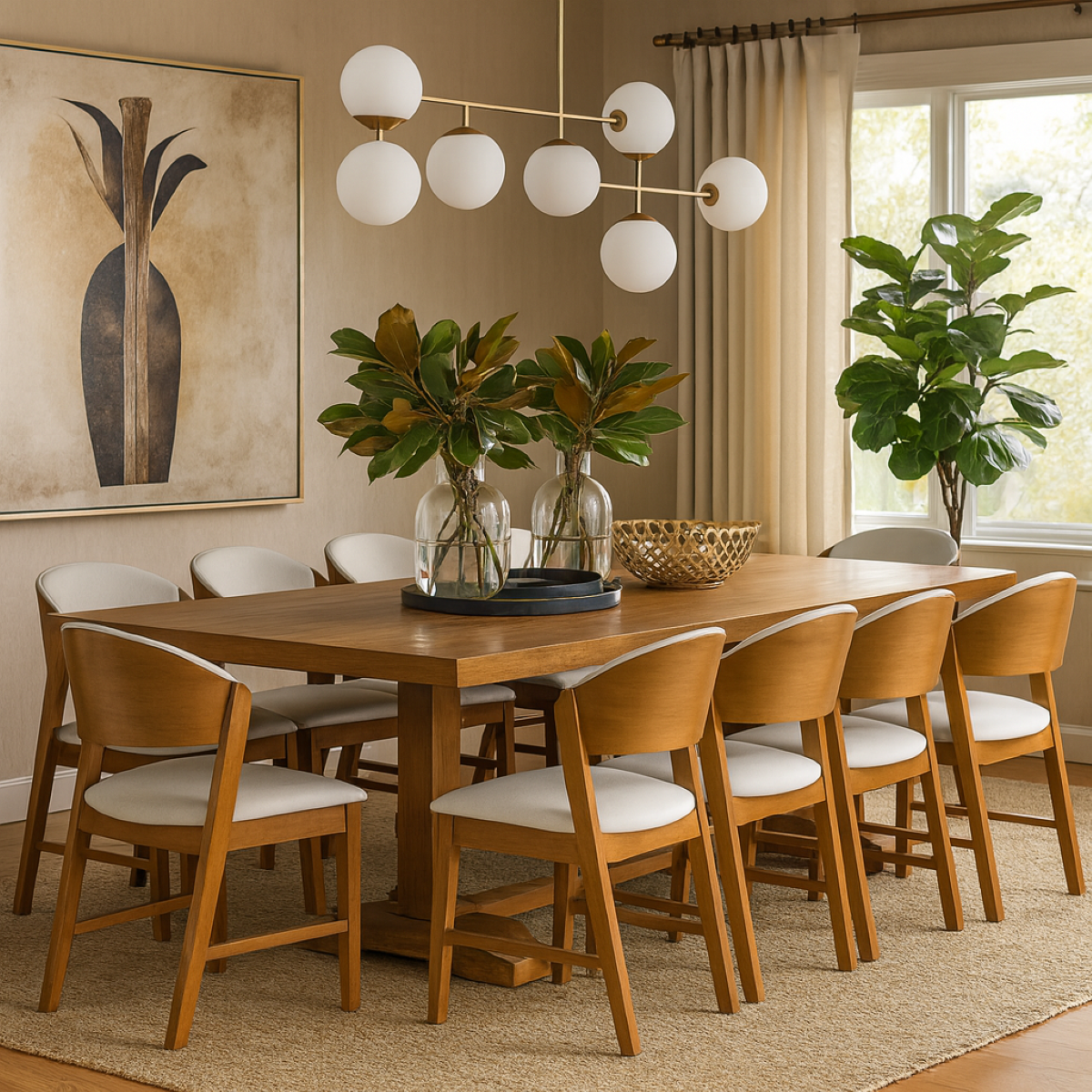 Com altura de 83 cm e um assento confortável de 55 cm de largura e 53 cm de profundidade, a Cadeira Siena proporciona uma experiência de uso firme e acolhedora. O estofamento em espuma D23, com espessura de 5 cm, oferece um toque suave, ideal para longas refeições em família ou jantares com amigos.